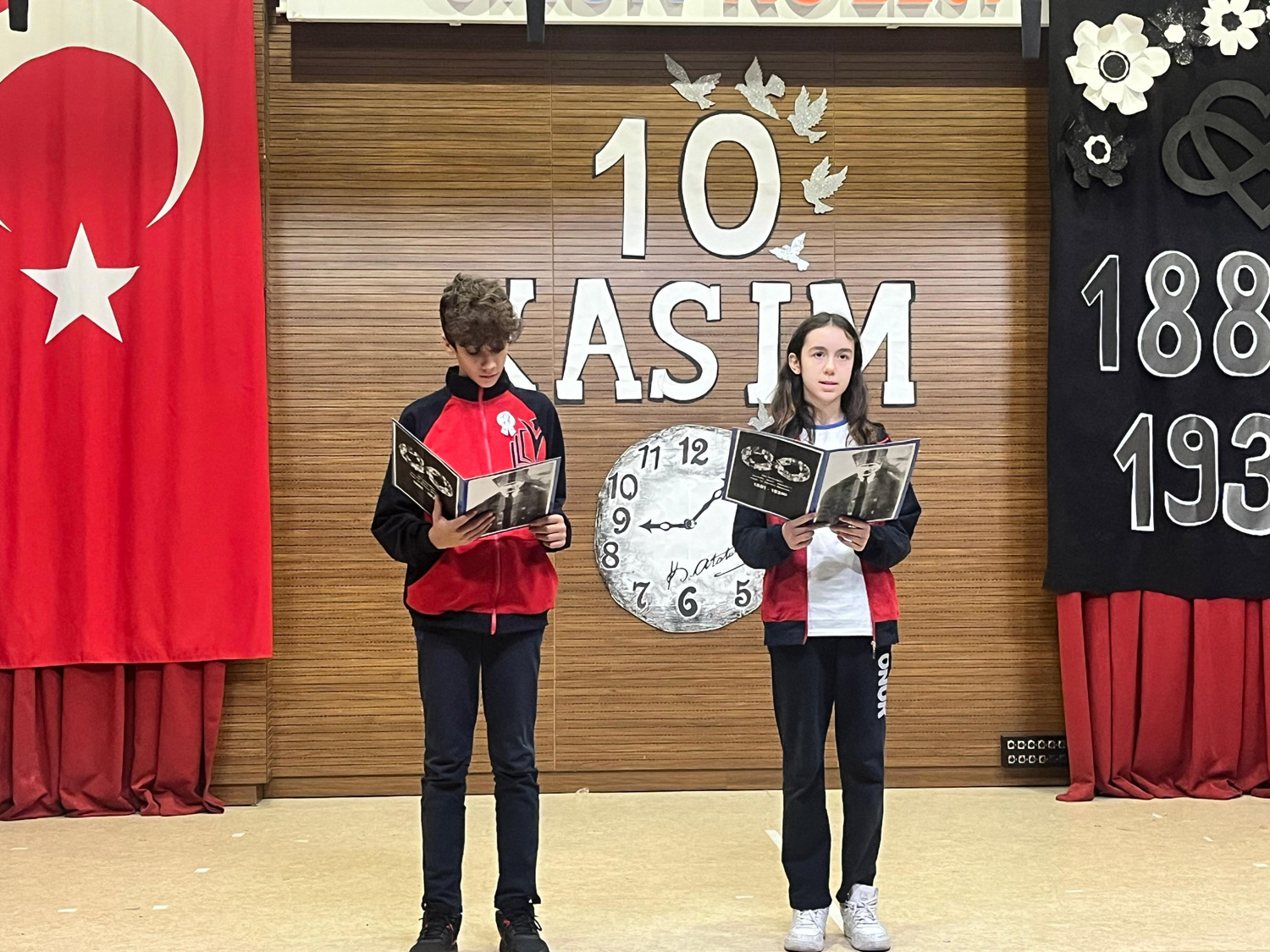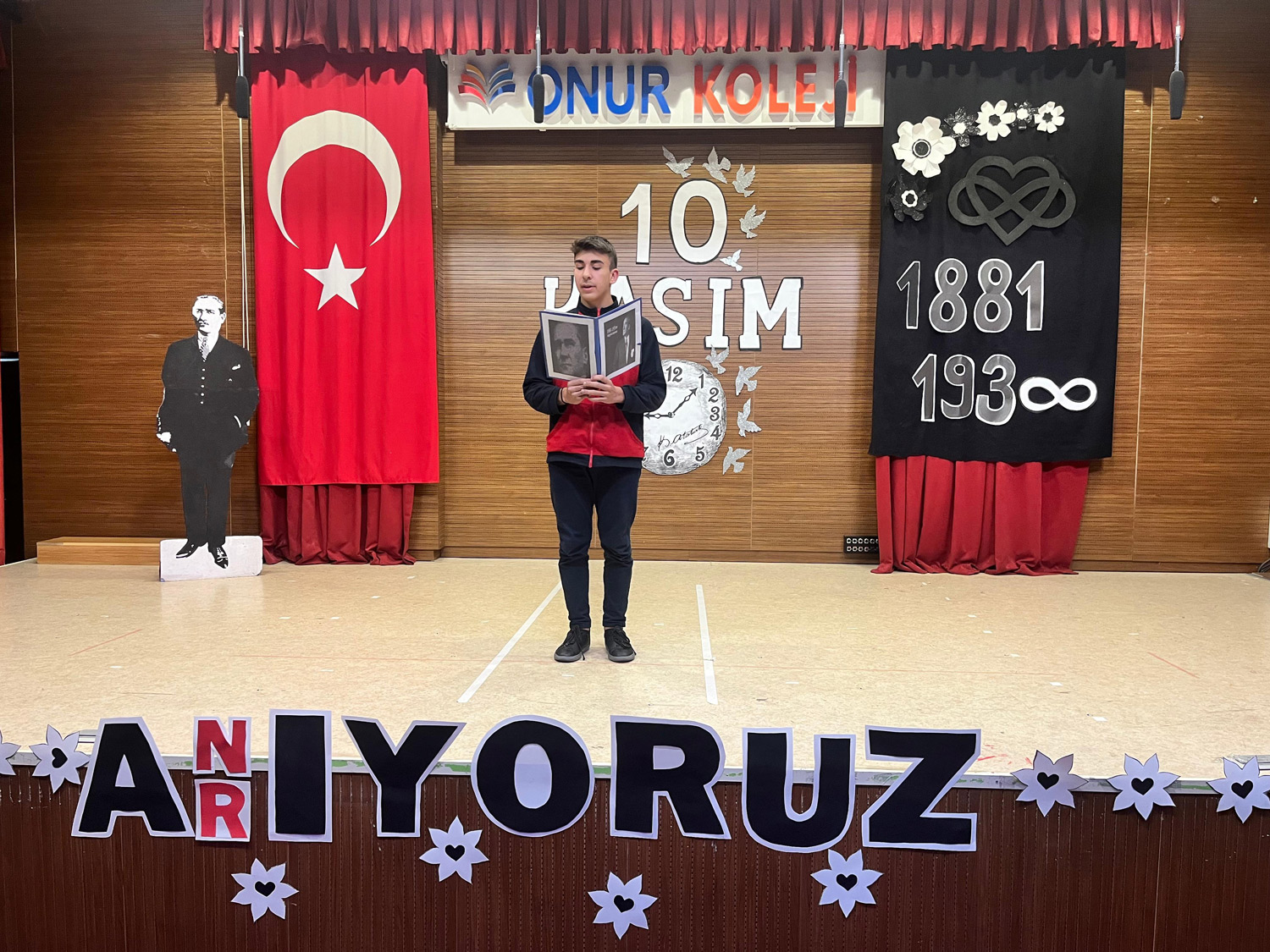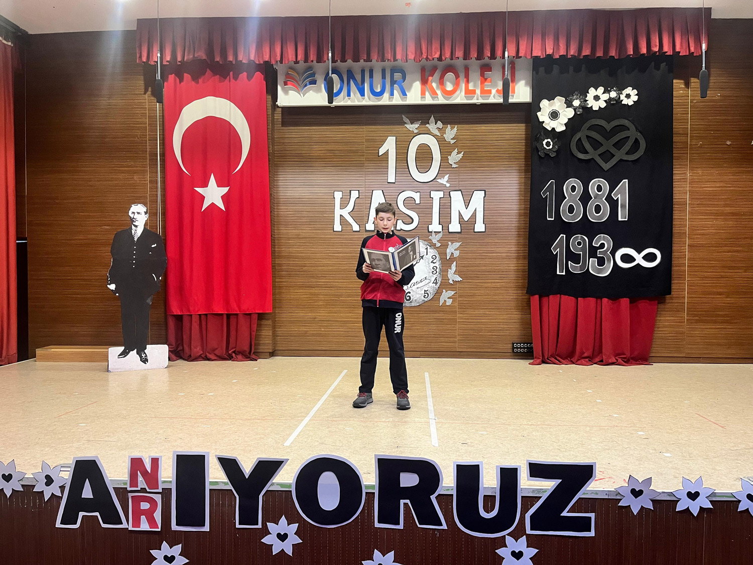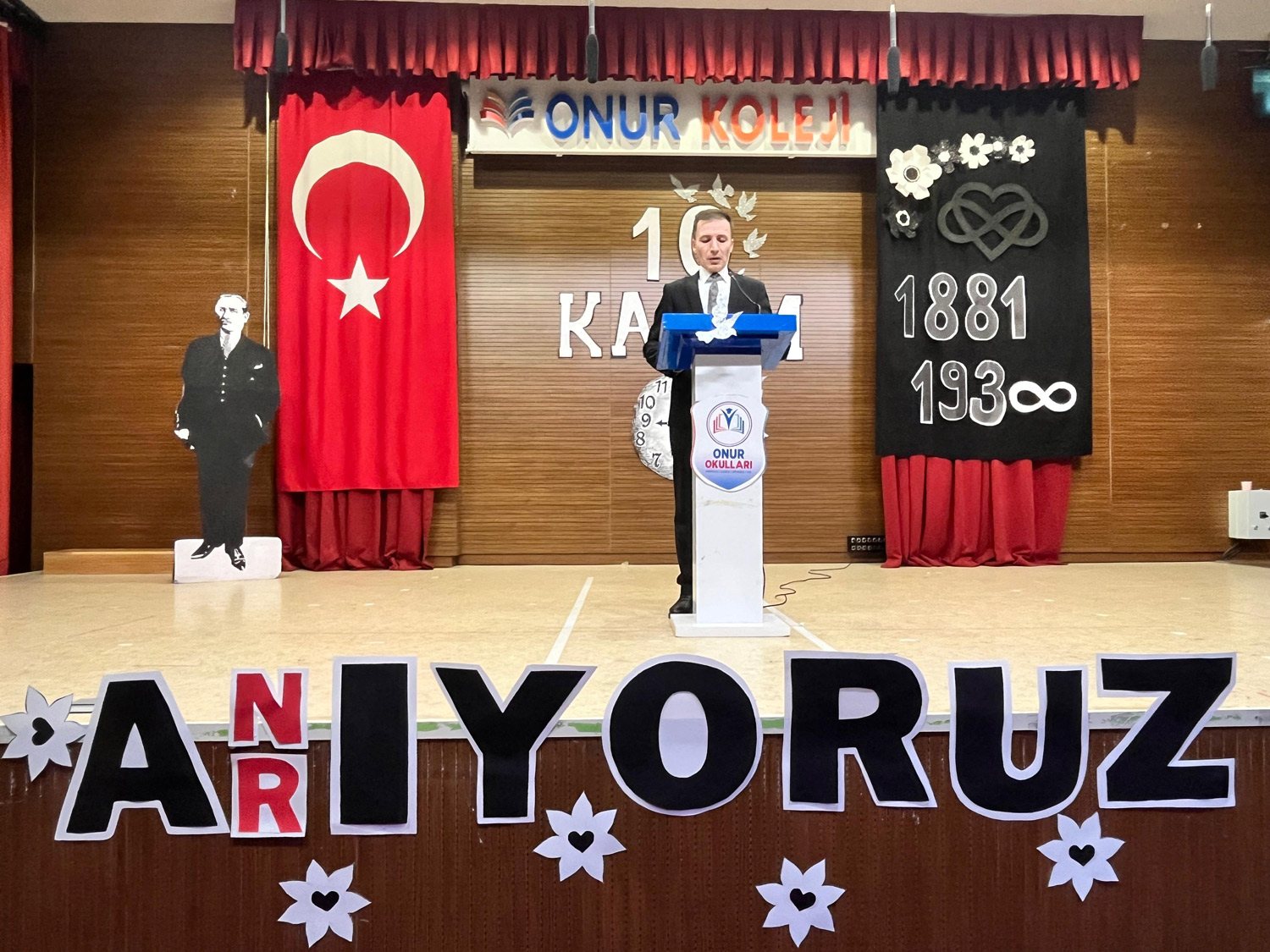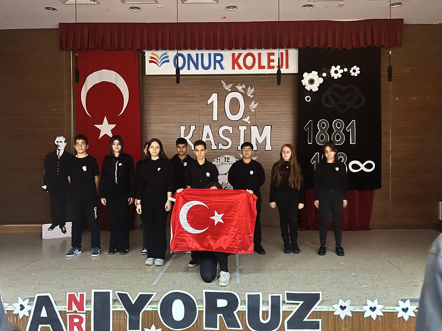 Anaokulu, İlkokul, Ortaokul ve Lise Kademelerimizde Ulu Önder Gazi Mustafa Kemal Atatürk’ü, ebediyete intikalinin 86. yıl dönümünde saygıyla ve minnetle andık. Okulumuzun Mustafa KIRAÇ Konferans Salonu’nda saygı duruşu ve İstiklal Marşımızın ardından Genel Müdürümüz Sn. Yahya KIRAÇ’ın günün anlam ve önemini belirten konuşmasını yaptı. Öğrenci ve öğretmenlerimizin hazırladıkları etkinliklerle anma törenimizi tamamladık. Atamızı saygı, şükran ve minnetle yâd ediyoruz.